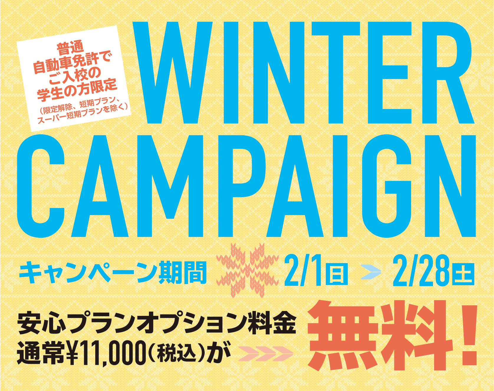 普通自動車免許でご入校の学生の方限定(限定解除、短期プラン、スーパー短期プランを除く)